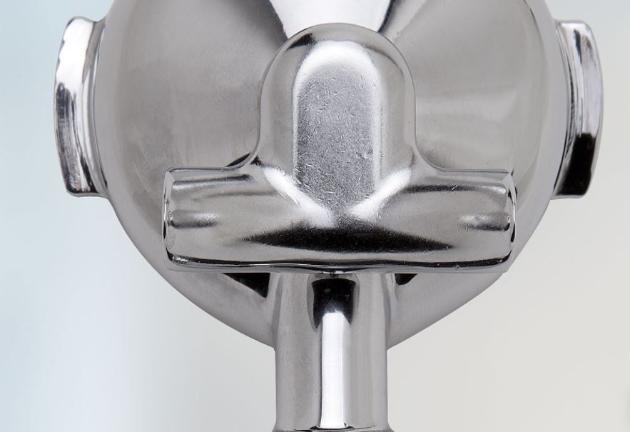 Hochwertiger, verchromter Filterträger mit zwei Ausläufen