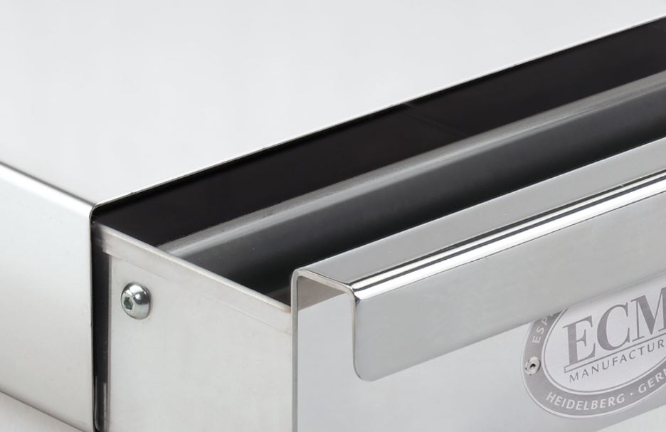 Schublade aus poliertem Edelstahl – perfekt verarbeitet