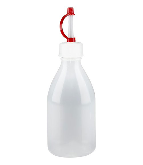 Saucentrichter zum Füllen, Giessen und Dekorieren mit Flüssigkeiten wie Saucen, Likör etc. Mit dem Saucentrichter kann kurz vor dem Servieren garniert werden. Durch das Drücken des Auslösers wird ausgegossen. Mit ergonomischem Griff.
